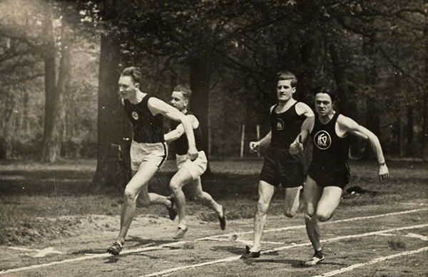 Staffellauf beim Leichtathletikvereinsklubkampf Männerturnverein Karlsruhe 1881 e. V. (MTV) gegen Karlsruher Fußballverein (KFV), 12. Mai 1936, Stadtarchiv Karlsruhe 8/SpoA 2096.