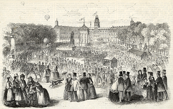 Volksfest auf dem Schlossplatz, Illustrierte Zeitung 18. Oktober 1853, Stadtarchiv Karlsruhe 8/PBS XI 1758.