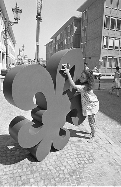 Skulpturenprojekt "Kunst für Karlsruhe" des BBK als Beitrag zum 275jährigen Stadtjubiläum, Juli 1990, Stadtarchiv Karlsruhe 8/BA Schlesiger A59/172/5/12.