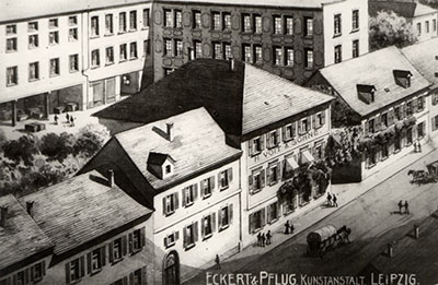 Orgelfabrik Voit von der Amthausstraße aus, um 1900, Pfinzgaumuseum Durlach U I 300.