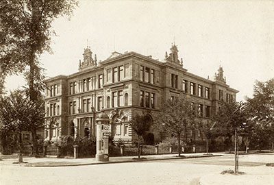 Nordostansicht der Akademie der bildenden Künste, Westendstraße (heute Reinhold-Frank-Straße) 81, um 1910, Stadtarchiv Karlsruhe 8/PBS XIVd 5.