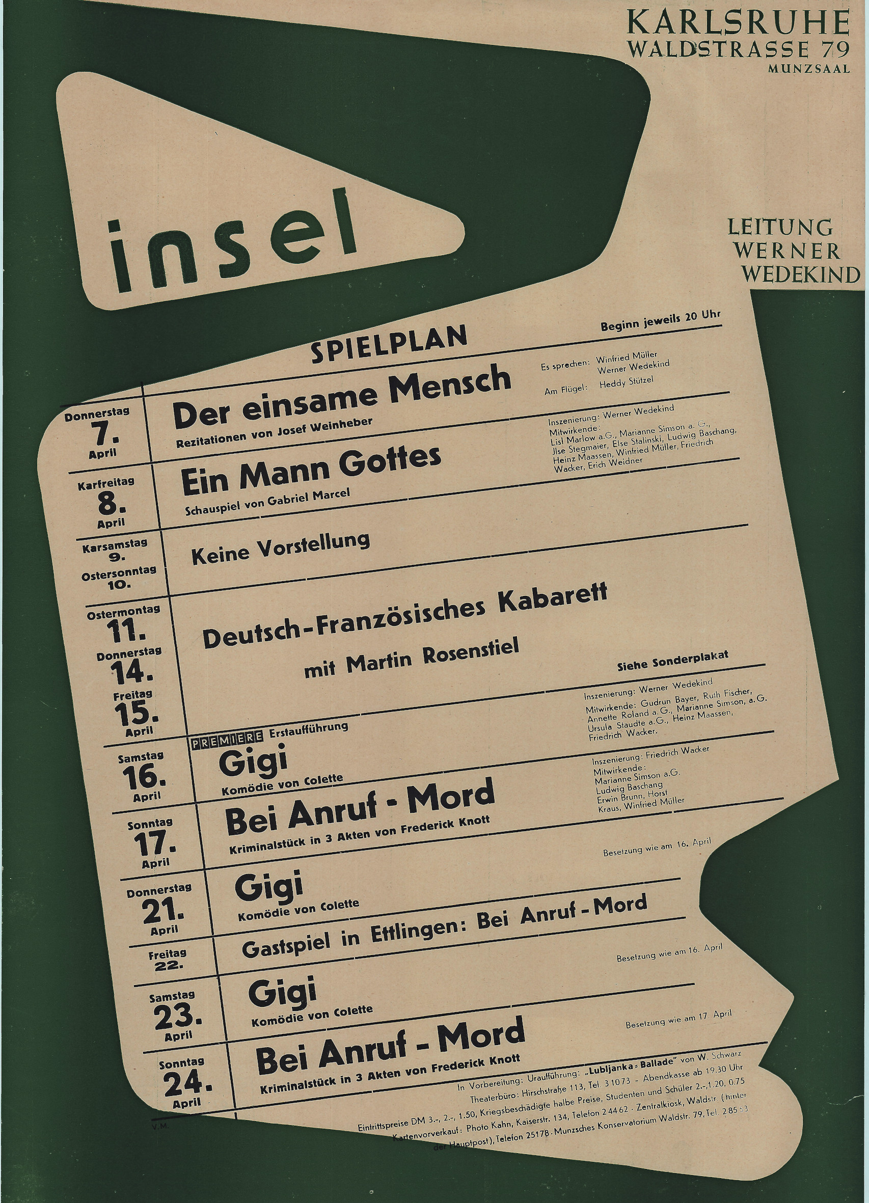 Spielplan der Insel vom 7. bis 24. April 1955, Stadtarchiv Karlsruhe 8/PBS X 2338.