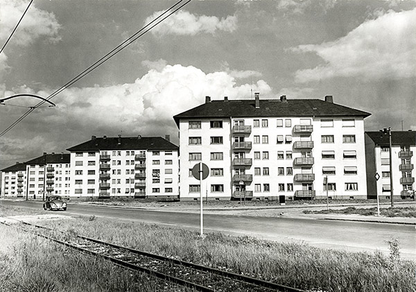 Wohnungsbau der Volkswohnung GmbH im Rintheimer Feld, 1955, Stadtarchiv Karlsruhe 8/BA Schlesiger A3/92/6/24.