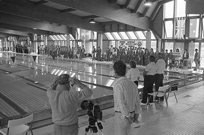 Internationaler Schwimm- und Vergleichskampf zwischen der Bundesrepublik, Australien und Schweden im damals neuen Fächerbad, August 1983, Stadtarchiv 8/BA Schlesiger A46/50/6/18.