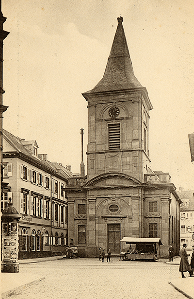 Kleine Kirche, Kaiserstraße, Ansicht von Norden, um 1900, Stadtarchiv Karlsruhe 8/PBS oXIVc 198.