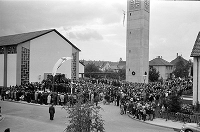 Weihe der neuen Trinitatis-Kirche in Durlach-Aue am 20. September 1964, Stadtarchiv Karlsruhe 8/BA Schlesiger A11/159/2/24.