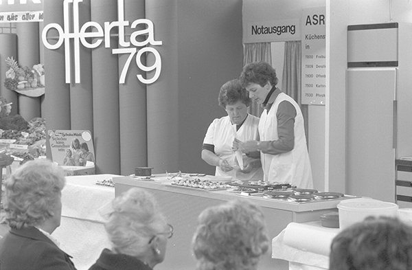 | aktuell | 15:14, 3. Dez. 2015 | 600 × 393 (150 KB) | Stadtarchiv3 (Diskussion | Beiträge) | Zwei Vertreterinnen des Deutschen Hausfrauenbundes bei einer Vorführung auf der offerta 79, Stadtarchiv Karlsruhe 8/BA Schlesiger A38/145/1/3. |
