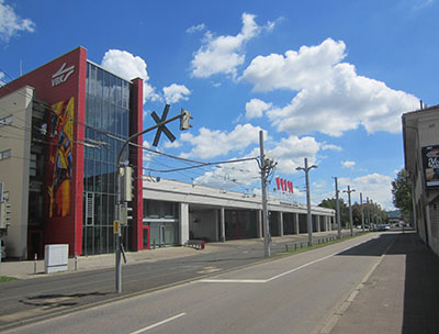 Gerwigstraße 65, VBK-Betriebshof mit Majolika-Wandbild, 2018, Foto: Feitenhansl.
