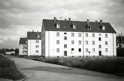Wohnhäuser in der Schinnrainstraße, 1956, Stadtarchiv Karlsruhe 8/PBS oXIIIb 777.