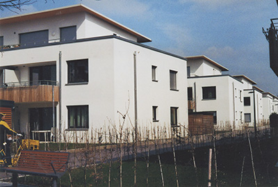 Häuser im Quartier Sonnengrün am Beginn des Hainbuchenwegs, März 2013, Stadtarchiv Karlsruhe 8/BA Erbacher 3126.