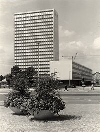 Der Sitz der Hauptverwaltung des Badenwerks war bis 1965 die Hebelstraße 2-4, ehe ein eigener Neubau mit dem repräsentativen 20-stöckigen Hochhaus im Stil des modernen Funktionalismus in der Badenwerkstraße 2 (später Landratsamt, Beiertheimer Allee 2) die Raumknappheit mit über die Stadt verstreuten Stellen behob. Dort arbeiteten 1995 rund 850 Beschäftigte. Seit 1991 war eine Erweiterung des Bürohochhauses mit einem Glasbaudreieck auf dem benachbarten ehemaligen Opel-Gelände an der Hermann-Billing-/Ritterstraße geplant, ehe 1994 der Umzug der gesamten Firmenzentrale in einen Neubau auf dem Areal der ehemaligen Milchzentrale an der Durlacher Allee geplant und 1997 vollzogen wurde.