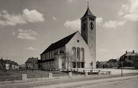Als bis Jahresende 1934 über 50.000 Reichsmark (RM) an Spenden für den auf 160.000 RM geschätzten Bau eingegangen waren, beauftragte das Erzbischöfliche Bauamt Freiburg Regierungsbaumeister Karl Schätzle mit der Planung der neuen Kirche. Schätzle entwarf eine dreischiffige Basilika mit Kapellenanbauten, seitlichem Westturm und geradem Chorabschluss. Das flach gedeckte Mittelschiff wird von hohen Rundbogenfenstern, die Seitenschiffe von Rundfenstern belichtet. Nach Genehmigung der Baupläne durch das Erzbischöfliche Ordinariat und die städtische Baubehörde erfolgte am 26. August 1935 der erste Spatenstich, am 6. Oktober 1935 die Grundsteinlegung, am 1. Dezember 1935 die Glockenweihe sowie am 11. Oktober 1936 die Konsekration.
