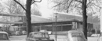 Gebäudeansicht mit Verbindungsgang zur Schwarzwaldhalle, 1966, Stadtarchiv Karlsruhe 8/BA Schlesiger A13/51/4/11.