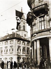 Beide residierten zunächst im Bezirksamt am Marktplatz, in dem auch das Polizeipräsidium untergebracht war. In dessen Keller wurden politische Gegner schon im Zuge der Machtübertragung auf die Nationalsozialisten gefoltert. 1935 zog die Gestapo zunächst in die Gartenstraße 25, dann wiederum aus Platzgründen ab 15. Februar 1938 die Abteilungen II (politische Polizei) und III (Spionageabwehr) in die Reichsstraße 24 (heute Ebertstraße 26) um; in der Gartenstraße verblieb nur die wirtschaftspolitische Abteilung. Im Juni 1940 waren die Räumlichkeiten auch dort zu klein, so dass Abteilung III in die Jahnstraße 18 zog. Dort befand sich auch die Hauptstelle des Sicherheitsdienstes (SD), der hier auch einen Folterkeller eingerichtet hatte.