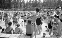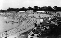 Das Rheinstrandbad entwickelte sich rasch zu einem beliebten Naherholungszentrum für die ganze Familie. In der Badesaison 1930 zählte man 247.318 Besucher. 1943 blieb das Bad zwar aus luftschutztechnischen Gründen geschlossen, die Stadtverwaltung hatte jedoch nichts einzuwenden, dass die badefreudige Bevölkerung "auf eigene Gefahr und Verantwortung" die Anlagen benutzte.
