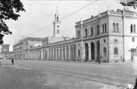 Im Westteil des alten Bahnhofs war die Stadtbibliothek von 1932 mit Unterbrechungen in der Kriegs- und Nachkriegszeit untergebracht. Das ehemalige Personenempfangsgebäude wurde 1934 in den neu errichteten Markthallenkomplex integriert. 1970 mussten Gebäude und Markthallen dem Neubau des Badischen Staatstheaters weichen.