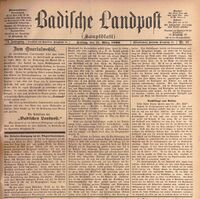 Badische Landpost, StadtAK 8/Ze 2; Karlsruher Zeitung vom 10. November 1908, StadtAK 8/Ze 17, https://digital.blb-karlsruhe.de/blbz/periodical/pageview/3704731?query=Landpost (Zugriff am 5. Februar 2021).