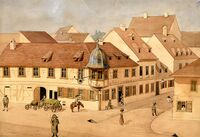 Arthur Valdenaire: Friedrich Weinbrenner - Sein Leben und seine Bauten, Karlsruhe 1919, S. 95/96, 105; Benedikt Schwarz: Alt-Karlsruher Wirtschaften, in: Die Pyramide, Beilage zum Karlsruher Tagblatt vom 10. Januar 1926, S. 8, https://digital.blb-karlsruhe.de/blbz/periodical/pageview/2450780 (Zugriff am 20. September 2023); Fritz Hirsch: 100 Jahre Bauen und Schauen, Bd. 2, Karlsruhe 1932, S. 430, http://digital.blb-karlsruhe.de/blbihd/Drucke/content/titleinfo/2965504 (Zugriff am 22. September 2023); Richard Wagner und Karlsruhe, hrsg. von der Stadt Karlsruhe, Karlsruhe 1987, S. 123 (= Karlsruher Beiträge Nr. 4, Mai 1987); Hea-Jee Im: Karlsruher Bürgerhäuser zur Zeit Friedrich Weinbrenners, Mainz 2004, S. 234 (= Friedrich Weinbrenner und die Weinbrennerschule Bd. 4).