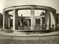 Nach einem kunstpolitischen Disput über die unzulängliche Unterstützung junger begabter Künstler seitens der Stadt beauftragte diese im Sommer 1903 den Architekten Hermann Billing mit dem Entwurf eines monumentalen Zierbrunnens zur Verschönerung der neuen Grünanlage. Der zweite, von Billing im August 1904 vorgelegte Entwurf einer als "Raum im Raum" konzipierten Brunnenanlage, gelangte schließlich zur Ausführung.
