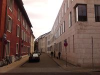 Mit der Errichtung der Badischen Landesbibliothek 1983-1991 nach Plänen von Oswald Mathias Ungers wurde die nördliche Fläche im Eckbereich zur Ritterstraße geschlossen. Die in Bauflucht stehende flache, quadratisierte und schmucklose Fassade der Bibliothek steht dabei in hartem Kontrast zu der zurückgesetzten, abwechslungsreich gegliederten Jugendstilfassade des Kirchenverwaltungsbaus. Verstärkt wird dieser Kontrast noch durch die kantige, geschlossene Front des neuen Verwaltungsbaus des Bundesgerichtshofes von 1996 im mittleren Straßenabschnitt, was diesen Straßenabschnitt schluchtartig erscheinen lässt. Das Straßenbild im westlichen Teil der Straße ist jedoch von Wohn- und Geschäftsbauten geprägt, die den typischen Wandlungsprozess der Aufstockung, Neubebauung oder Modernisierung im 19. und 20. Jahrhunderts erfahren haben.