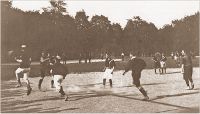 Hier fand am 28. November 1899 gegen England eines der sieben so genannten Ur-Länderspiele vor der Gründung des Deutschen Fußballbundes statt. Später hatten die meisten Fußballvereine eigene Fußballplätze bzw. Stadien, so dass 1911 noch der FC Victoria, der FC Neuoststadt und der FC Hertha dort spielten. 1919 erging der Auftrag an das städtische Gartenamt, das 11.300 Quadratmeter umfassende kreisförmige Gelände für den Männerturnverein (MTV) herzurichten, der einen Fußballplatz suchte. Die holprige Fläche sollte für das Fußballspiel eingeebnet und zwei transportable Fußballtore angeschafft werden. Da der MTV zu diesem Zeitpunkt aber keinen Fußballbetrieb mehr hatte, wurde der Plan aufgegeben und lediglich das ehemalige Feuerwehrhaus mit Umkleidekabinen versehen. Ansonsten wurde der Platz wieder von Schülern bespielt. Seine Bedeutung als Fußballplatz hatte der Engländerplatz mit dem Bau eigener Spielfelder oder Stadien für die größeren Fußballvereine seit 1905 zunehmend verloren.