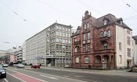 Den optischen Auftakt bildet die Reichspostdirektion, 1934-38 mit einer Ecke zum Ettlinger-Tor-Platz erbaut von Hermann Billing (1867-1947, Ettlinger-Tor-Platz 3). Ihr gegenüber steht, zugunsten eines Grünstreifens von der Straße zurückgesetzt, der achtgeschossige Wohnblock der Volkswohnung von 1960 mit Ladenzeile und Restaurant (Nrn. 2, 2a-c). Nach dem Novotel (Festplatz 2) folgt das städtische Vierordtbad mit markantem Kuppelbau und Schornstein, 1873 erbaut von Josef Durm (1837-1919), 1900 ergänzt um die Schwimmhalle von Stadtbaurat Wilhelm Strieder (1848-1913, Nr. 4). Im 1865 angelegten Tiergarten (seit 1877 auch Stadtgarten) steht das 1955 von Erich Schelling (1904-1986) geplante und von Stadtoberbaurat Helmuth Stephan errichtete, damals hochmoderne Tullabad, 2015 zum Exotenhaus des Zoologischen Gartens umgebaut (Nr. 4b).