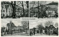Postkarte mit Ansichten der Rittnertstraße, Fechtstraße und Ecke Dürrbachstraße/ Posseltstraße, 1943, Kunstverlag Felix Korn, Pfinzgaumuseum Durlach U I 1762.