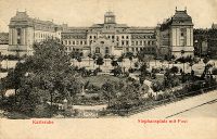 Stephanplatz mit Rückfront des Reichspostgebäudes und Parkanlage, vor 1905, Stadtarchiv Karlsruhe 8/PBS oXIIIb 427.