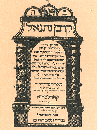| 16:38, 14. Nov. 2015 | Bio-865 2.jpg (Datei) | 345 KB | Titelblatt des Korban Netanel, aus: Moshe Nathan Rosenfeld (Hrsg.): Jewish printing in Karlsruhe, Jerusalem 1997, S. 13. | 1 | |